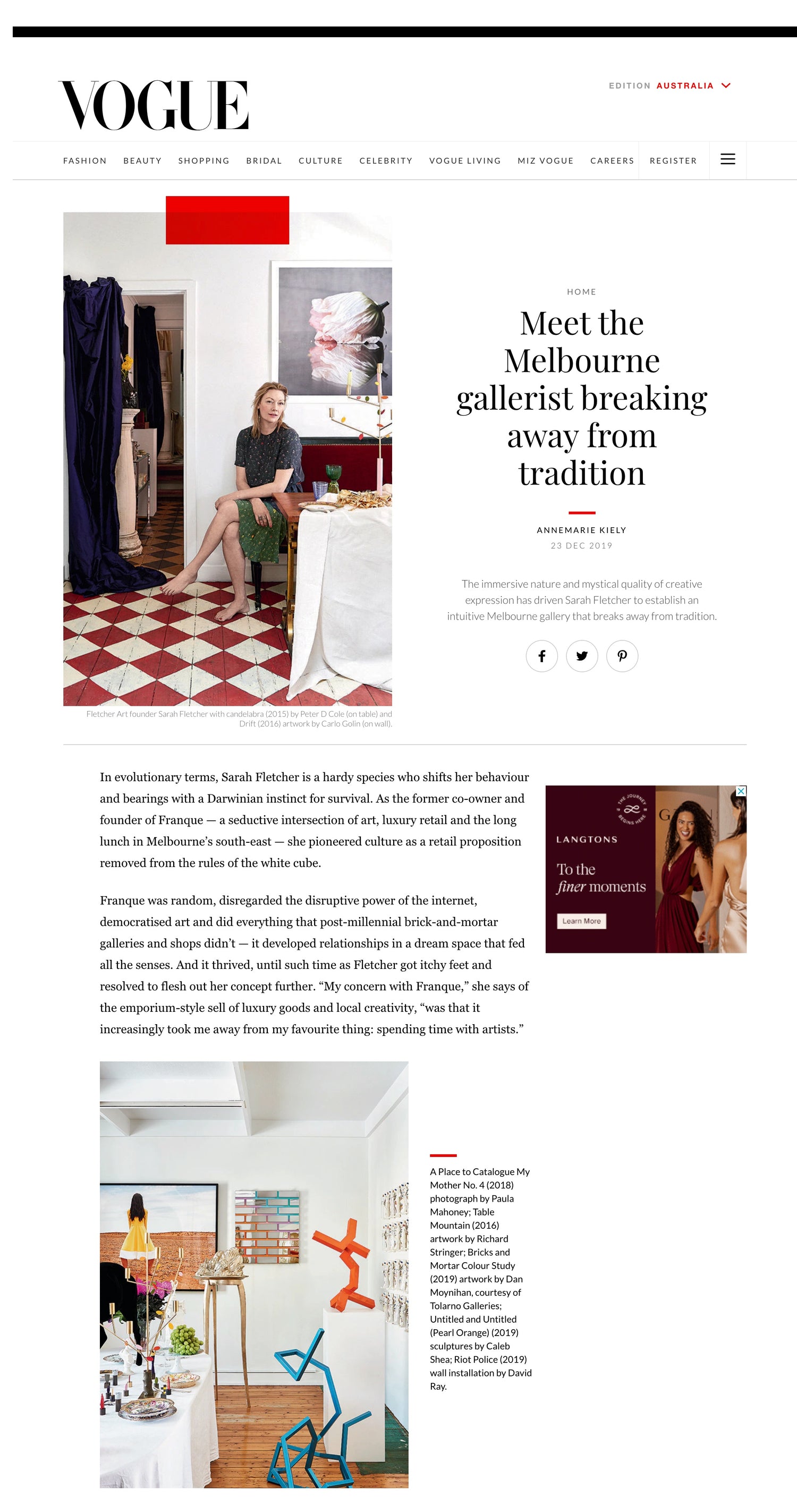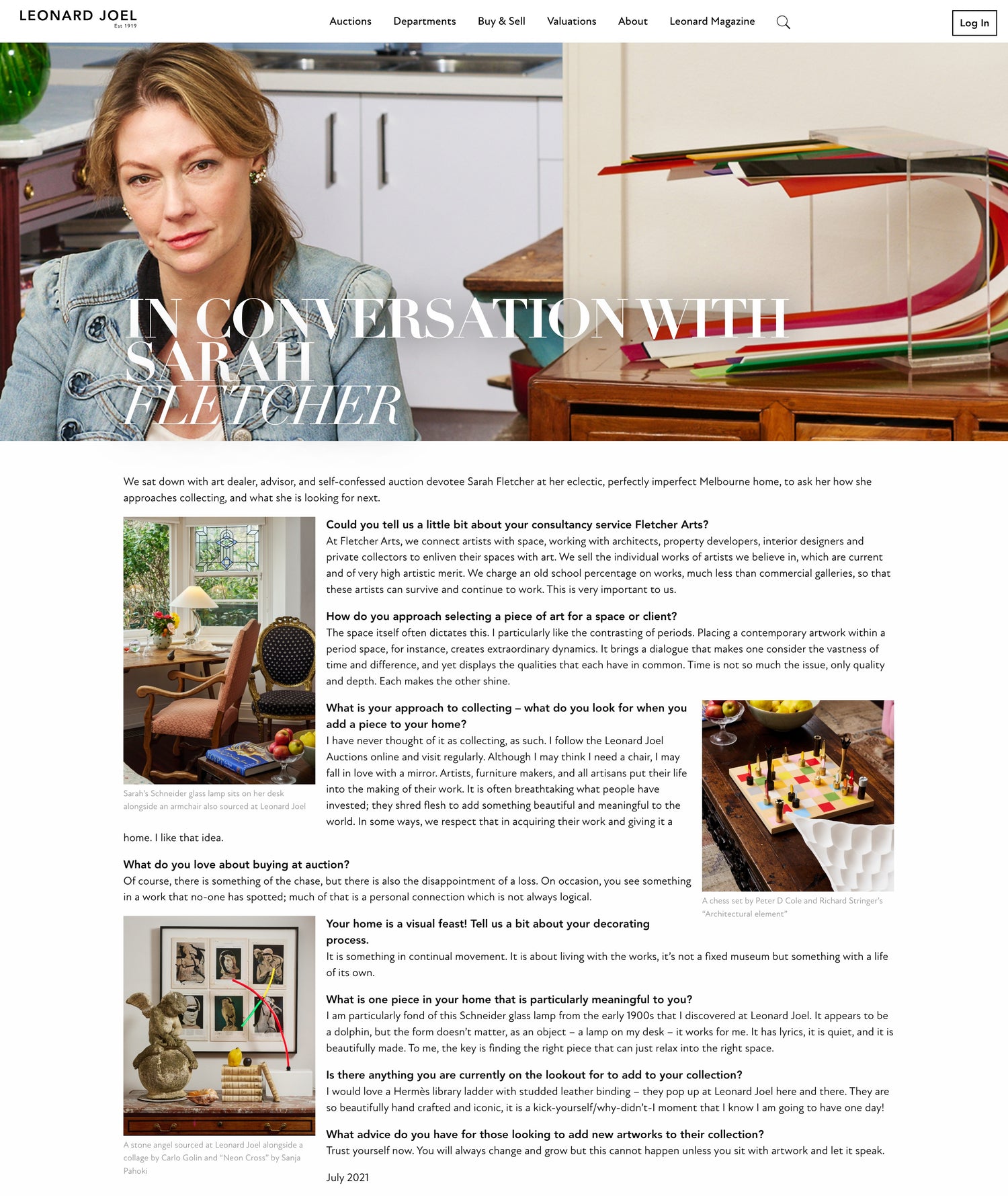 Art advisor Sarah Fletcher explains how she channels her passion for storytelling and personal expression into an evocative gallery proposition in Melbourne that is at once personal, suggestive and a little gritty.